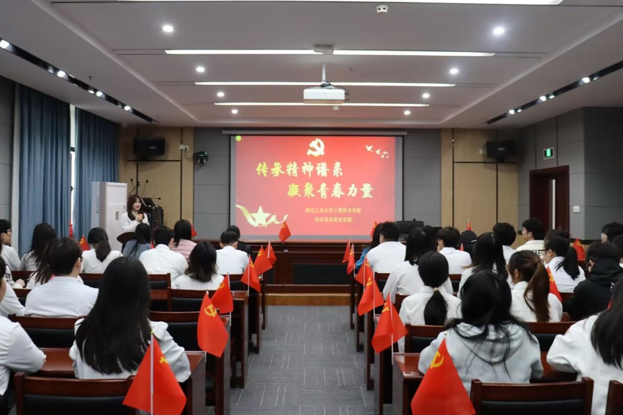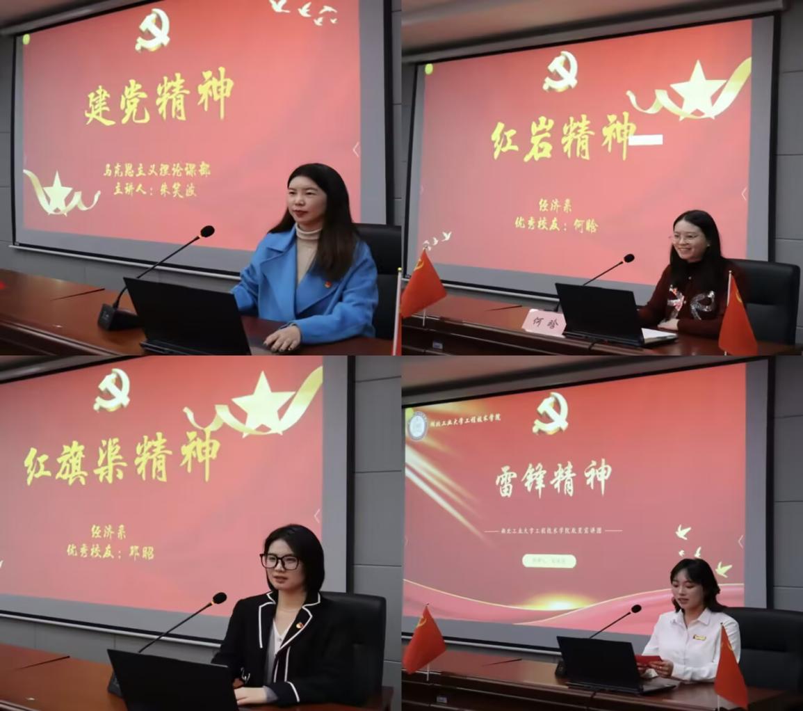 近日,湖北工业大学工程技术学院经济系举办了“传承精神谱系 凝聚青春力量”思政系列微宣讲第一讲,该系思政导师朱笑波正在给同学们宣讲伟大建党精神。