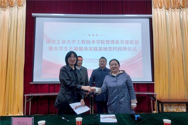 为深化新时代高校党建与人才培养融合创新,推动校校共建实现资源共享、优势互补,3月27日,湖北工业大学工程技术学院党委副书记曹仲伟带领管理系一行前往武汉市新洲区弘毅学校开展党建联建暨大学生志愿服务实践基地签约授牌仪式。
