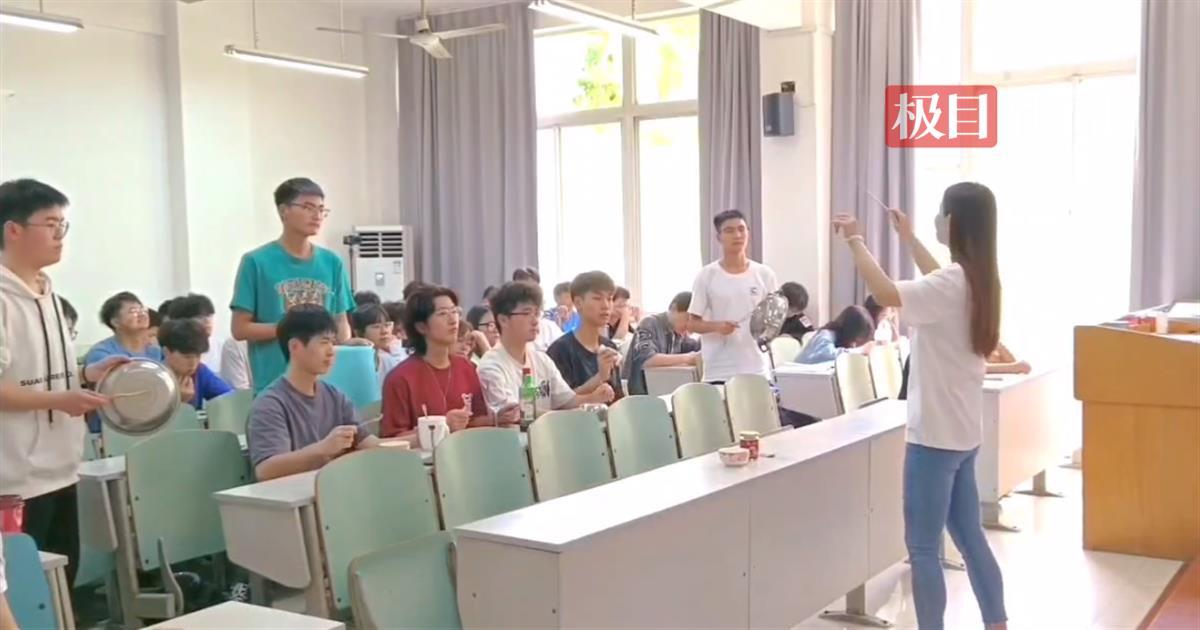 “预备,走!”伴随着《春节序曲》喜庆的旋律和明快的节奏,教室中央的七位同学拿起手中的锅、碗、杯、瓶、盆和塑料水桶,叮叮咚咚地敲了起来。在颜佳玥老师的现场指挥下,这个临时组建的“打击乐队”玩得很“嗨”,他们时而单击,时而和鸣,生动诙谐的表演一下子活跃了课堂气氛,围观的同学纷纷拿出手机拍照,还有学生情不自禁地鼓起掌来……近日,湖北工业大学工程技术学院《大学公共艺术》课堂上,该校师生用简单的工具开起一场“音乐会”。