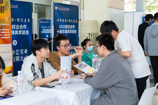 作为学院长期战略合作伙伴,华晟经世本次邀请了近100家行业企业参会,涉及机械制造、自动化、电子、通信、物联网、大数据、新能源、电气工程、汽车装备供应链、低空经济、建筑工程、生物医药、新材料、化工、物流、工业设计等多个行业近千个岗位。本次招聘会除主要面向校企合作的共建专业方向外,也向全院如生化系、土木系、计算机系、管理系等开放,提供多种就业岗位,为2025届毕业生提供了丰富的就业机会。双选会现场,企业代表与毕业生深入交流,精准匹配人才需求。学院领导与华晟经世企业代表共同回顾了十年合作历程,并就未来共建实习实训基地、深化产学研合作等议题达成多项共识。