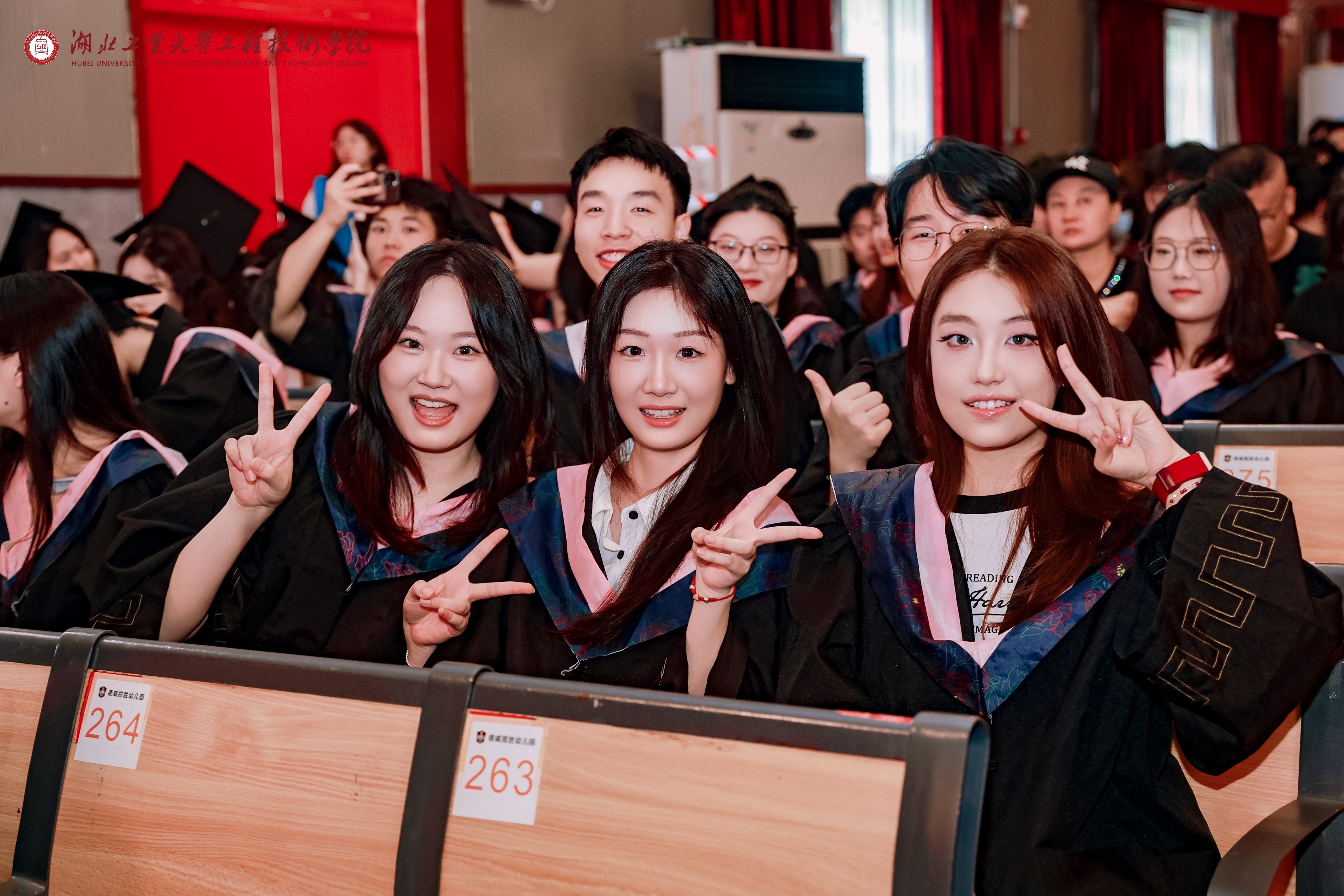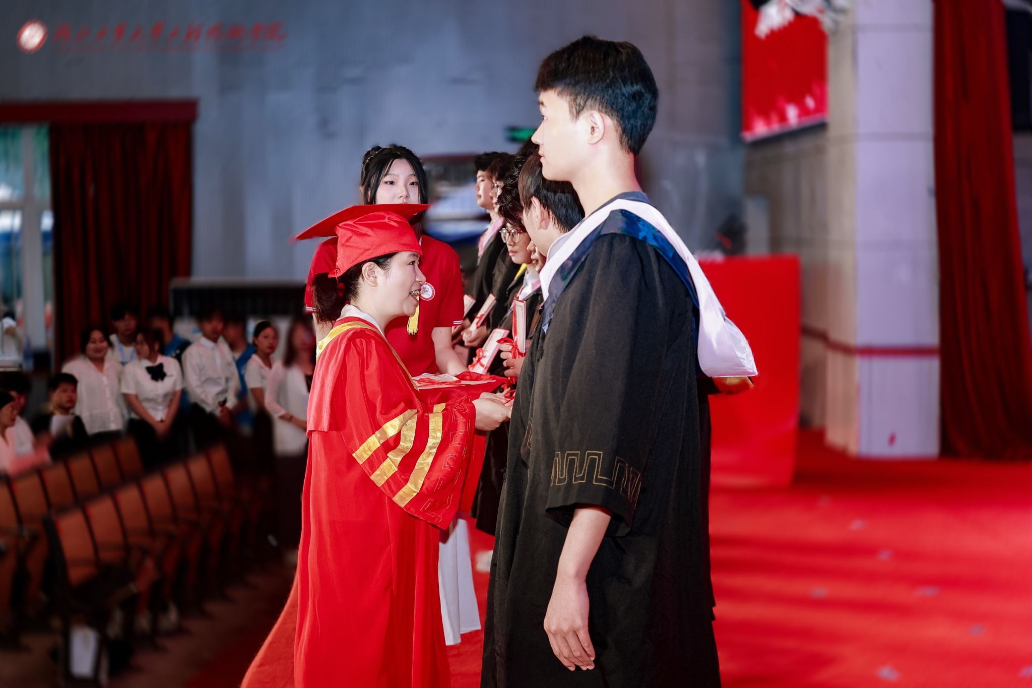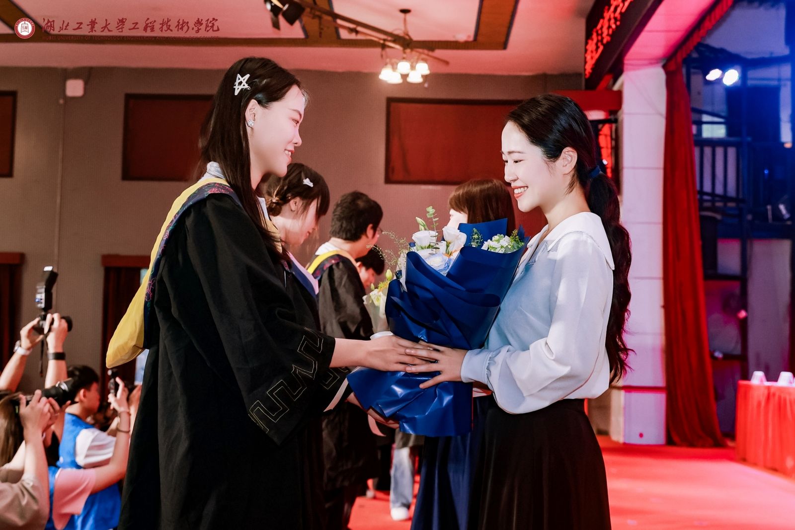 湖北工业大学党委副书记胡晓艳率全体院领导、各系教授为在场的本科毕业生拨穗正冠,为他们的大学生活画上了圆满的句号。