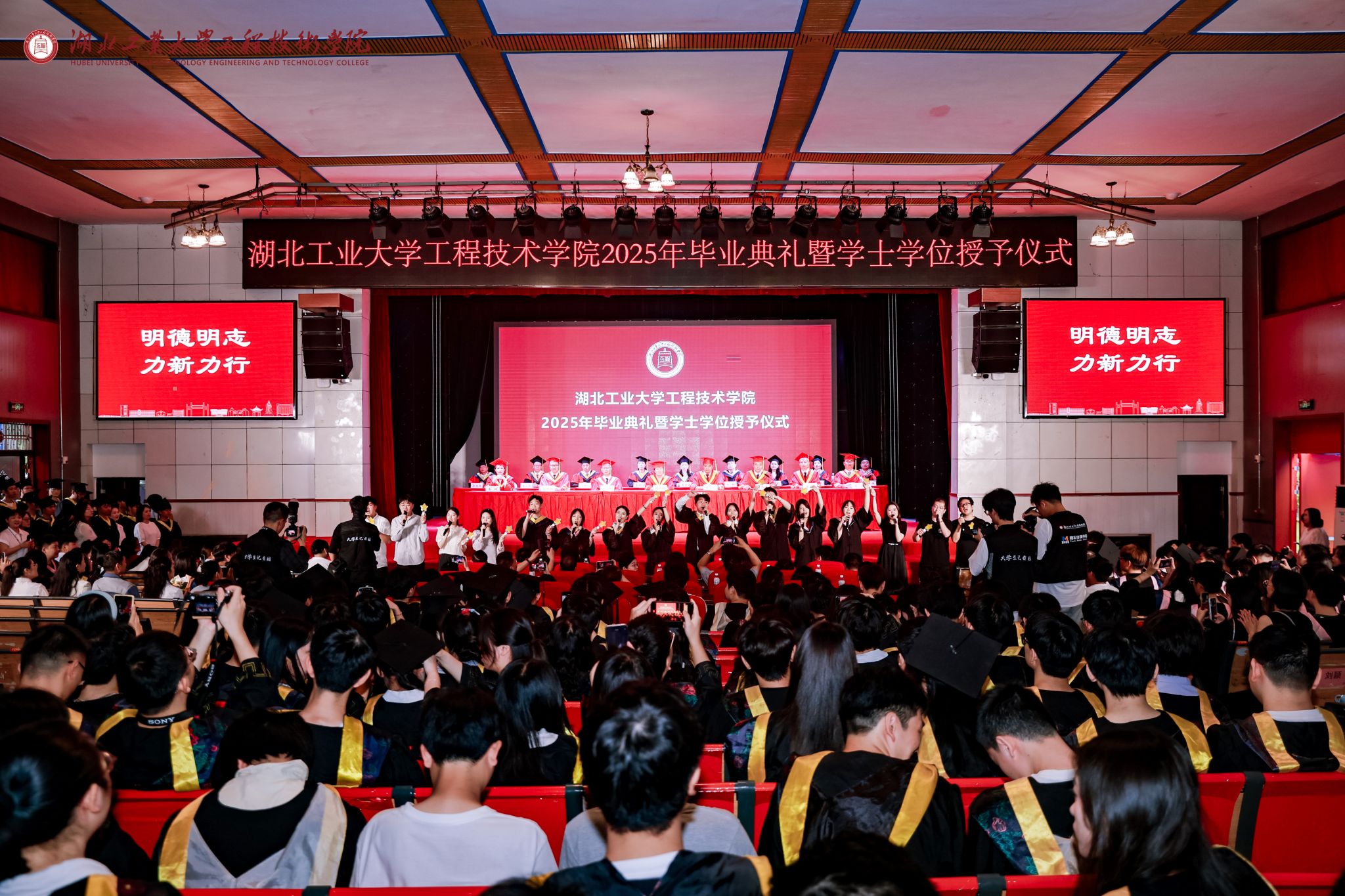 巡司河畔,骊歌悠扬。6月10日上午,湖北工业大学工程技术学院2025年毕业典礼暨学士学位授予仪式在学校中区大礼堂隆重举行。湖北工业大学党委副书记胡晓艳为优秀毕业生代表颁奖。学院领导朱爱军、张业鹏、曹仲伟、宋建林、孟涛、查纯、姜伟等出席典礼。学院党委副书记曹仲伟主持典礼。