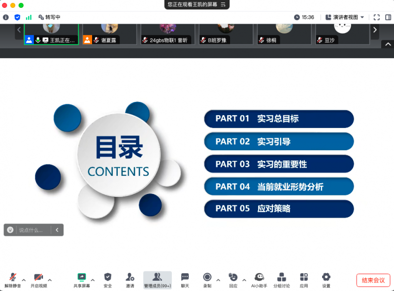 会议核心环节中,实习管理老师王凯向与会家长系统介绍了2025年实习实训工作的整体规划,着重讲解了实习核心目标、重要性、前期准备及实施流程。会议明确了实习在提升学生实践能力、促进理论应用与行业接轨、增强就业竞争力中的关键作用。他强调,实习作为人才培养不可或缺的环节,是检验学习成果、实现角色转变、拓展职业发展空间的必经之路。