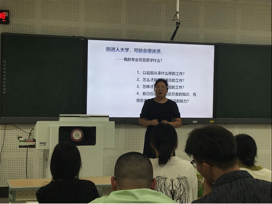 课程伊始,徐彬教授直面当今世界、国家和高等教育发展的现实,引导新生找准发展之基。然后,直视同学们的自我现实,鼓励新生调整心态,树立“大”学生的角色意识,走好大学第一步。接着,徐彬教授进一步指出,大学生之“大”在于要学会自主探索,既要学会独立生活,又要善于寻求帮助,像大学生那样学习和生活;既要正确对待荣誉,又要学会面对挫折,像成年人那样思考问题。勉励新生面向未来,及时调整状态,适应大学生活。随后,徐彬教授指引新生从教材中学、从教师的授课方案中学、从重大时政事件中学、从综合实验和学科竞赛中学,从而构建自己的知识体系和提升自身的素质。最后,建议新生从职业发展、考研和出国留学等方面提前做好学业规划。