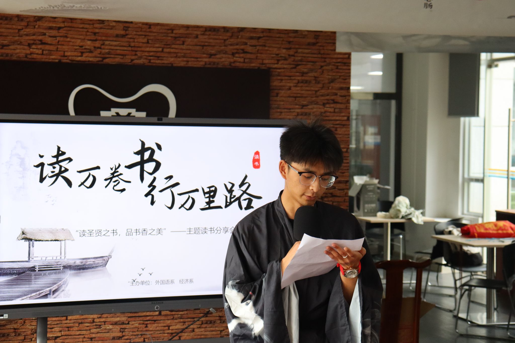 “这次的‘古风版’读书分享会,我体会到了不一样的中国文化。这场思维火花和心灵体悟的激烈碰撞中我感受到了,书乃良师益友,书籍的魅力无限。”余佳慧分享心得。