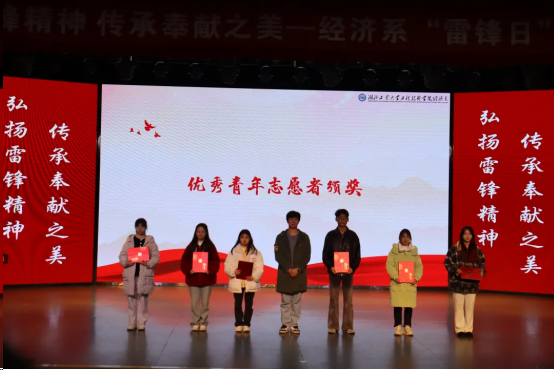 在“分享雷锋故事”环节,毛佳琪同学用慷慨激昂的发言,引起了全场热烈的掌声,她表示:“传承、践行、发扬雷锋精神的使命与责任交接到我们新一代青年的手上,吾辈需谨遵教诲,以明理求真之精益求精、博采众长之谦虚谨慎、与时俱进之创新奋进,爱国励志、求真力行,做好新时代的‘雷锋青年’,为中华民族伟大复兴的中国梦贡献力量。”接着,许强老师为 6名在社会实践中做出突出贡献的优秀青年志愿者颁发了荣誉证书,优秀志愿者黄艳用她的亲身经历感染着广大学子向雷锋同志学习,在志愿服务中提升自我、服务社会。