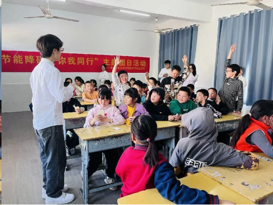 “低碳宣传,不应该只在学校,我们要走出去,从“小”做起,我们去把低碳生活的理念种在小朋友的心中吧!”3月30日,湖北工业大学工程技术学院经济系团学代表和阳光爱心社成员,与武汉麦田计划公益组织联合,开展“节能降碳,你我同行”主题团日活动,走进咸安区贺胜小学,宣传“地球一小时”低碳日。