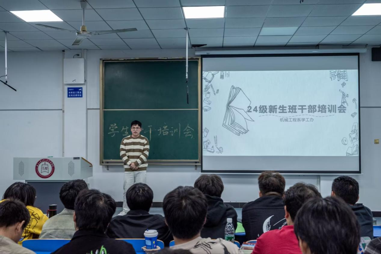 为进一步提升学生自我管理能力,加强学生骨干培养。2024年10月23日,湖北工业大学工程技术学院机械工程系在工二D003举行了学生骨干培养活动。参与人员有24级学生骨干。