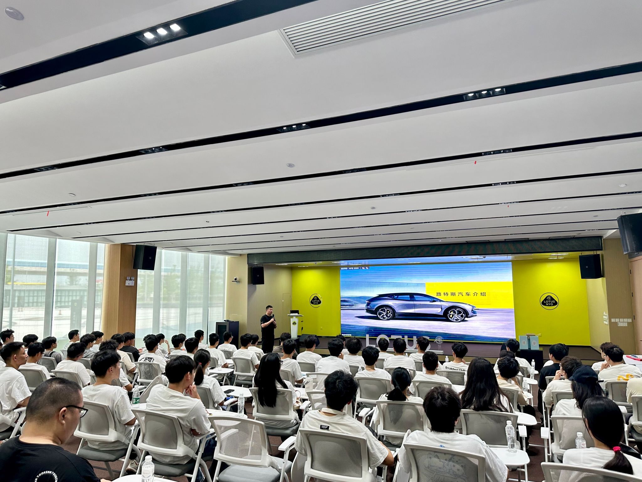 在工厂工作人员的带领下,学生们实地参观了路特斯全球智能工厂的数字化孪生车间,了解到了路特斯的发展历程、工厂布局及环境、工厂运作,对路特斯的系列产品和企业内部的工作流程有了更加直观的认识。