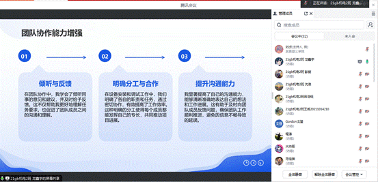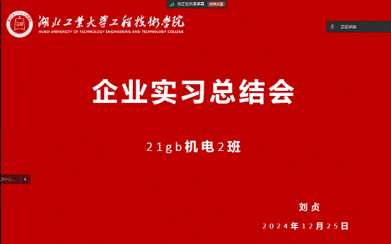 2024年12月25日,机械工程系智能制造校企合作专业召开了12月学生企业实习总结会。此次会议旨在回顾和总结智能制造校企合作专业本年度实习情况,切实了解学生目前的实习状态,引导学生建立实习的正确认识。机械系副主任程涛、教研室副主任潘玉荣、企业项目负责人李冠中经理、企业实习管理团队和21gb机电2班全体同学参加了本次会议。会议由企业实习管理老师刘贞主持。