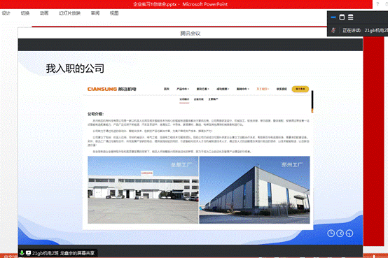 最后,实习指导老师王成对以上2名同学的实习情况依次进行点评,并结合两位同学的工作汇报,介绍了电气工程师、结构工程师两个机电专业岗位内容和技能要求,叮嘱学生在外实习注意人身财产安全的同时要完成实习课程的教学安排。