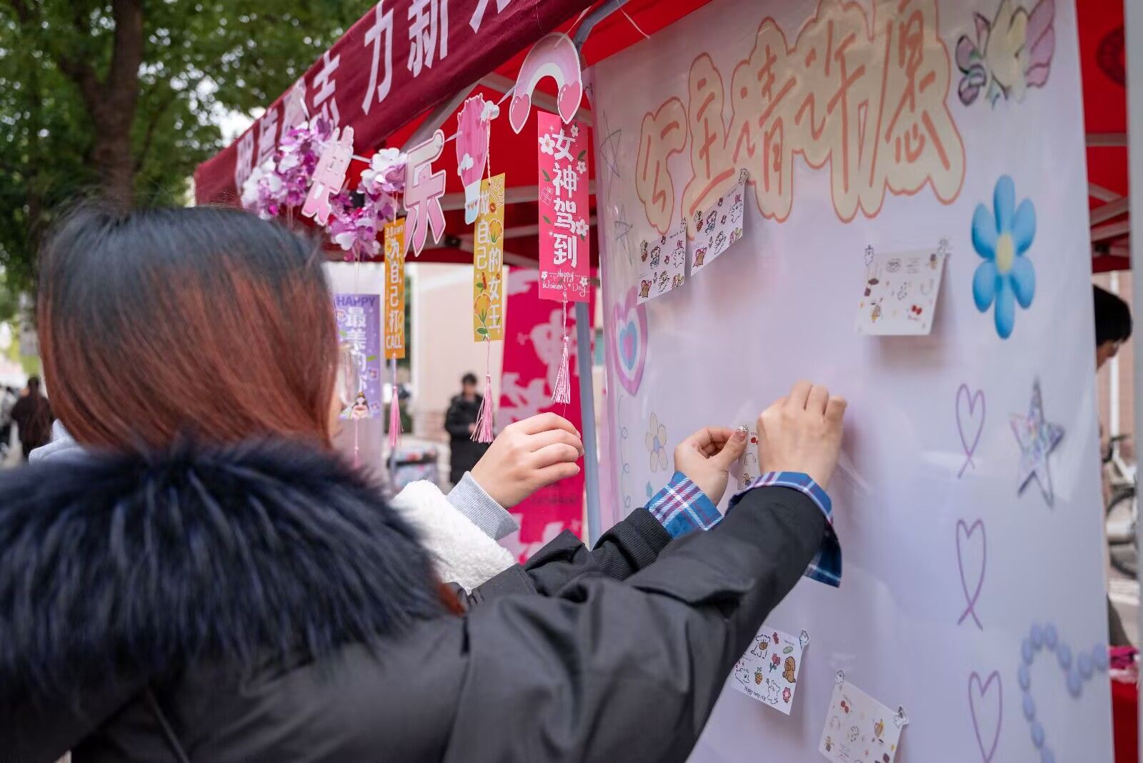 在3月7日,机械工程系以“三八”国际妇女节为契机,举办校园女神节活动,参与本活动的同学到达现场可写下自己的愿望并留下自己的联系方式,并参与看图猜人、一句话故事、是与不是等小游戏,鼓励女生们勇敢表达自我,追求梦想,在未来的学习和生活中绽放光彩,成为更加自信、独立、优秀的女性。