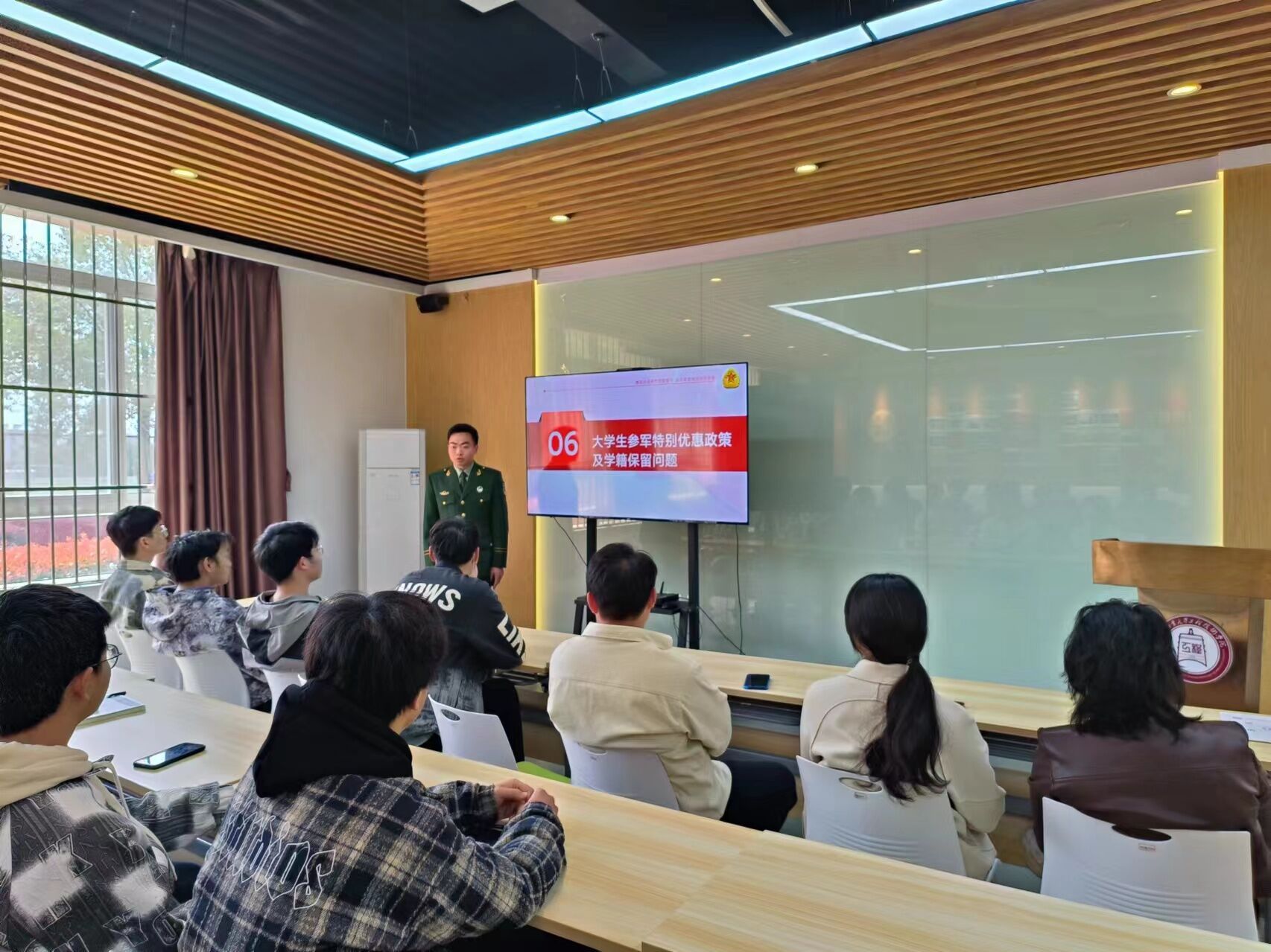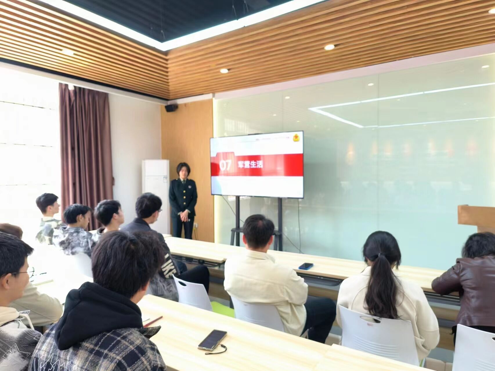 为加强征兵政策宣传,激发学生报效祖国、应征入伍的热情,推进2024年秋季征兵工作,机械工程系于2024年3月20日中午12:00在一站式学生社区召开“军歌嘹亮桌戎装,梦想人生正启航 ”2024年度征兵宣传大会。此次征兵动员会由学院征兵专项辅导员瞿弋涵主持召开,退伍复学学生代表、各班有征兵入伍意愿的学生参会。