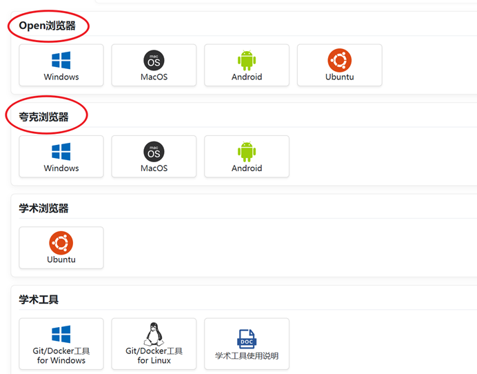 点击“浏览器及工具下载”选项,可根据主机操作系统下载相应的浏览器版本。