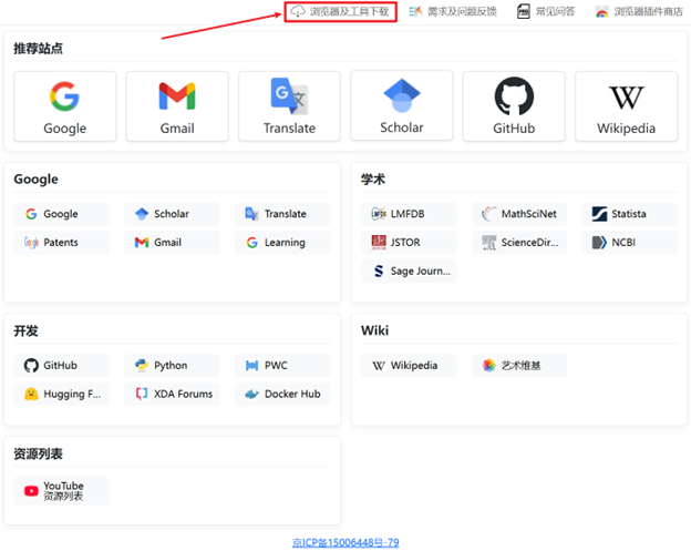 2、浏览器安装好后,即可使用页面导航内的所有资源