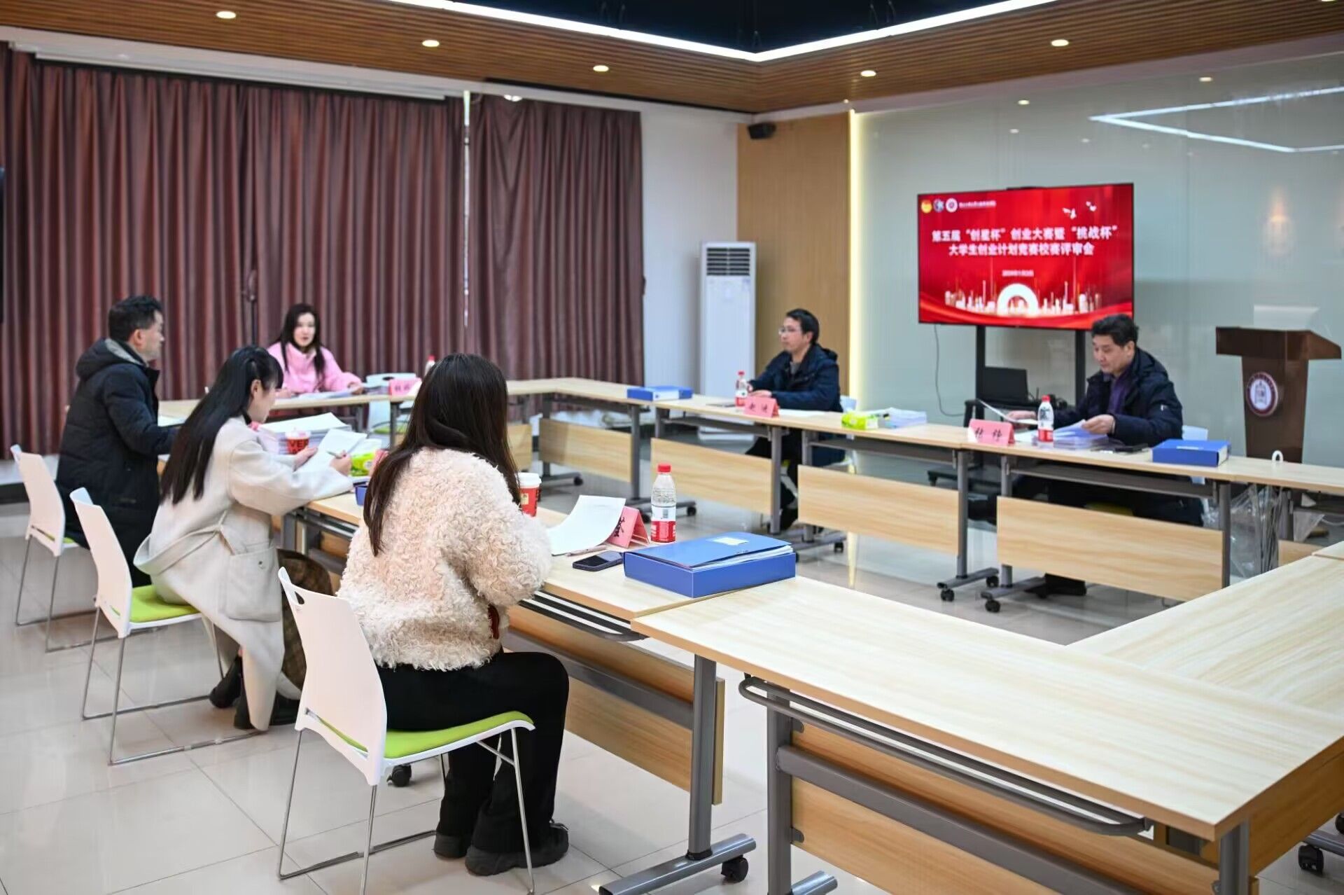 为引导和激励青年学生将所学专业知识与经济社会发展紧密结合,切实提高创新创业的意识和能力,助推学院优良学风建设,1月2日中午,由共青团湖北工业大学工程技术学院委员会主办,院青年创新发展中心承办的第五届“创星杯”创业大赛暨“挑战杯”大学生创业计划竞赛校赛评审会在一站式学生服务中心举办。湖北工业大学机械工程学院创新创业中心主任张铮,机械工程学院机械设计系主任赵迪、湖北工业大学工程技术学院招生与就业指导中心主任毛婷婷、管理系系主任袁荃、教务部副部长黄东斌担任此次评审工作。评审会由团委副书记张婷婷主持。