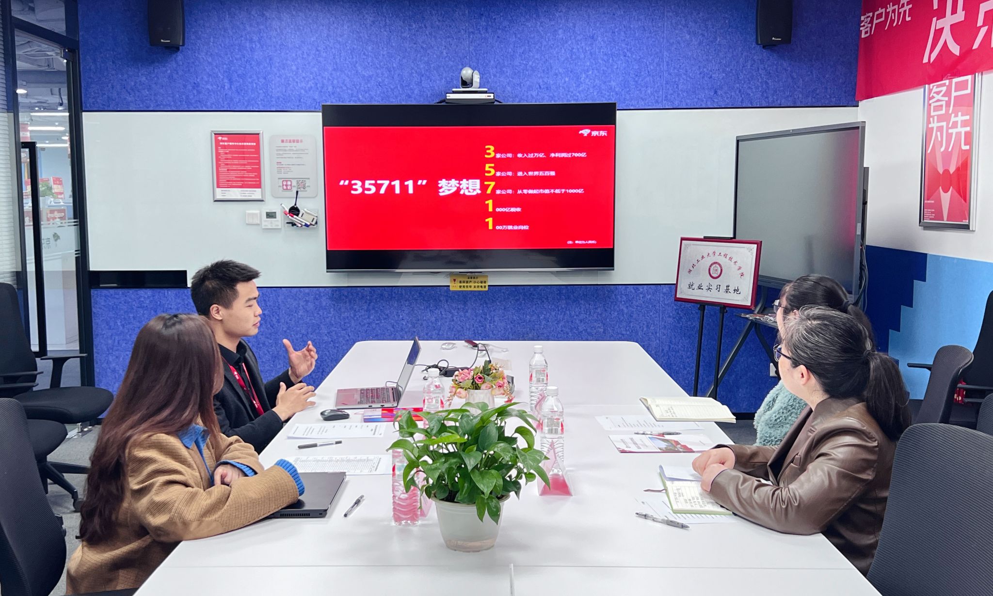 在进行了充分沟通交流以及参观了京东武汉职场的工作环境之后,双方签署了校企就业实习基地合作协议,并举行了就业实习基地挂牌仪式。双方一致表示将进一步多维度、多渠道、多举措加快合作进程,推进合作项目尽快落地。