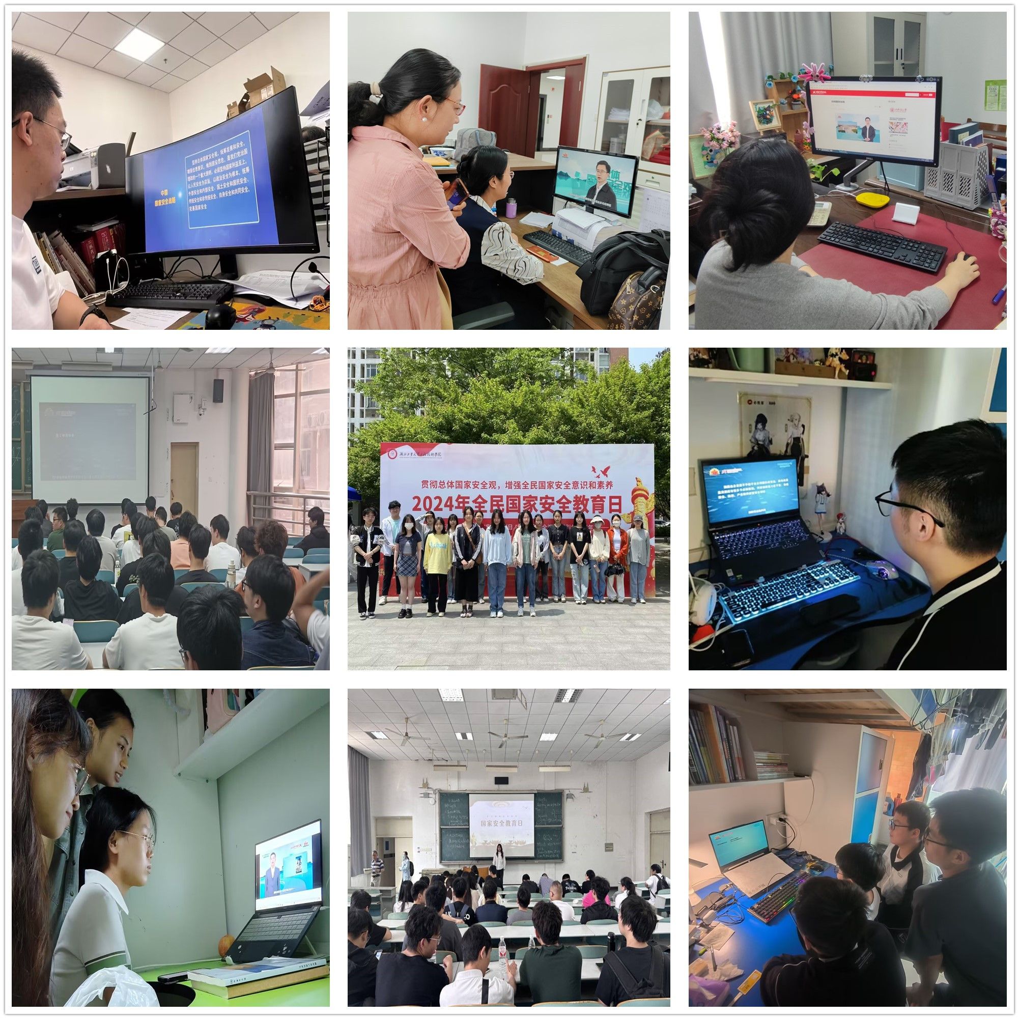 组织全体师生错峰观看《千万高校学生同上一堂国家安全教育课》直播、观看全国高校思想政治工作网发布的“总体国家安全观”等网络公开课视频学习、参加“2024年全国大学生国家安全知识答题”等系列活动。