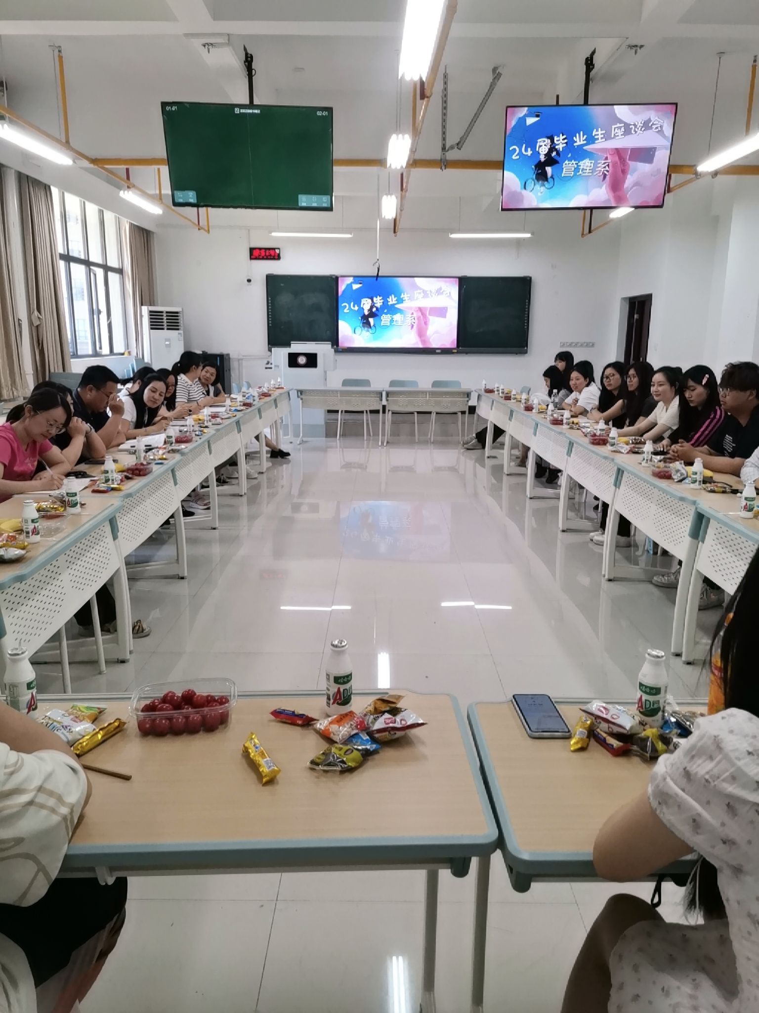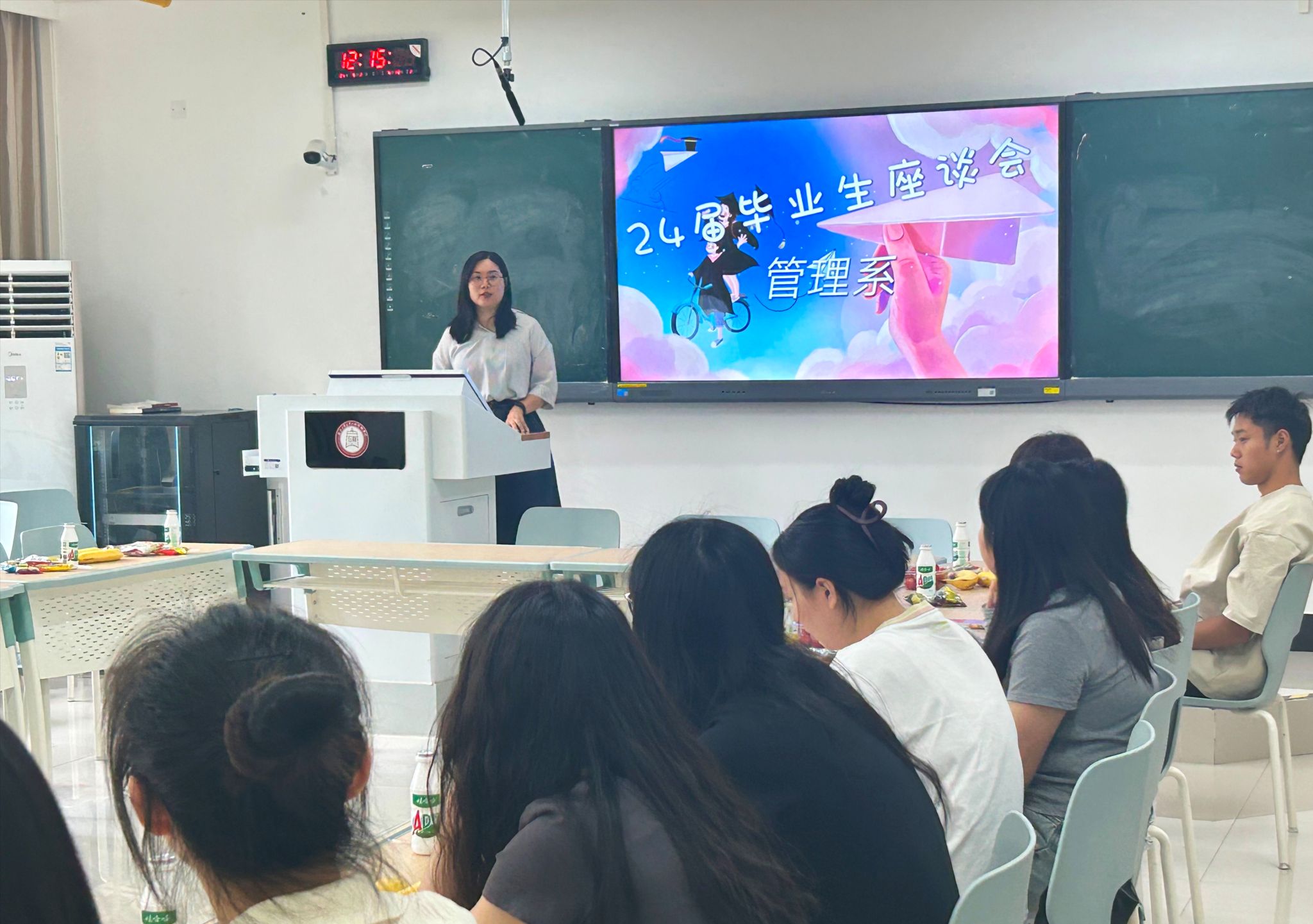 为进一步做好毕业生的教育管理和服务工作,关爱毕业生成长发展,倾听毕业生的心声,更好地为毕业生做好服务保障。5月29日,管理系在南综403教室召开2024届毕业生座谈会,管理系主任袁荃、党总支书记王婵以及学工办、教研室老师、各毕业班代表参加座谈会。会议由毕业年级辅导员张力维主持。