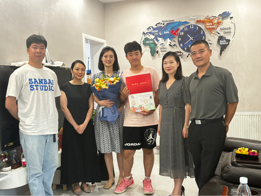 为进一步扎实推进学院招生录取工作,增强新生的仪式感和归属感。7月30日,学院副院长查纯、经济系党总支书记祝乐带领辅导员许强、田思源一行,在这炎炎夏日,亲手将经济系第一封录取通知书送到家住武汉市江岸区空军预警学院家属区的石鍇乐同学手中。