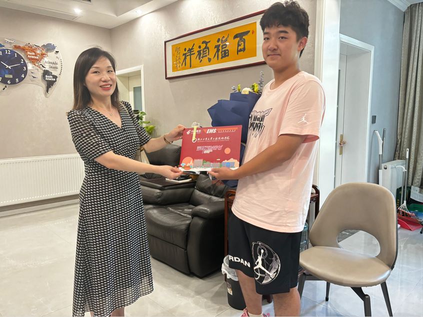 经济系2024级国际经济与贸易专业新生石鍇乐同学确认个人信息后,激动地说道:“没想到学院领导会亲自来到我家,将录取通知书送到我的手中,太让我感动了!”
