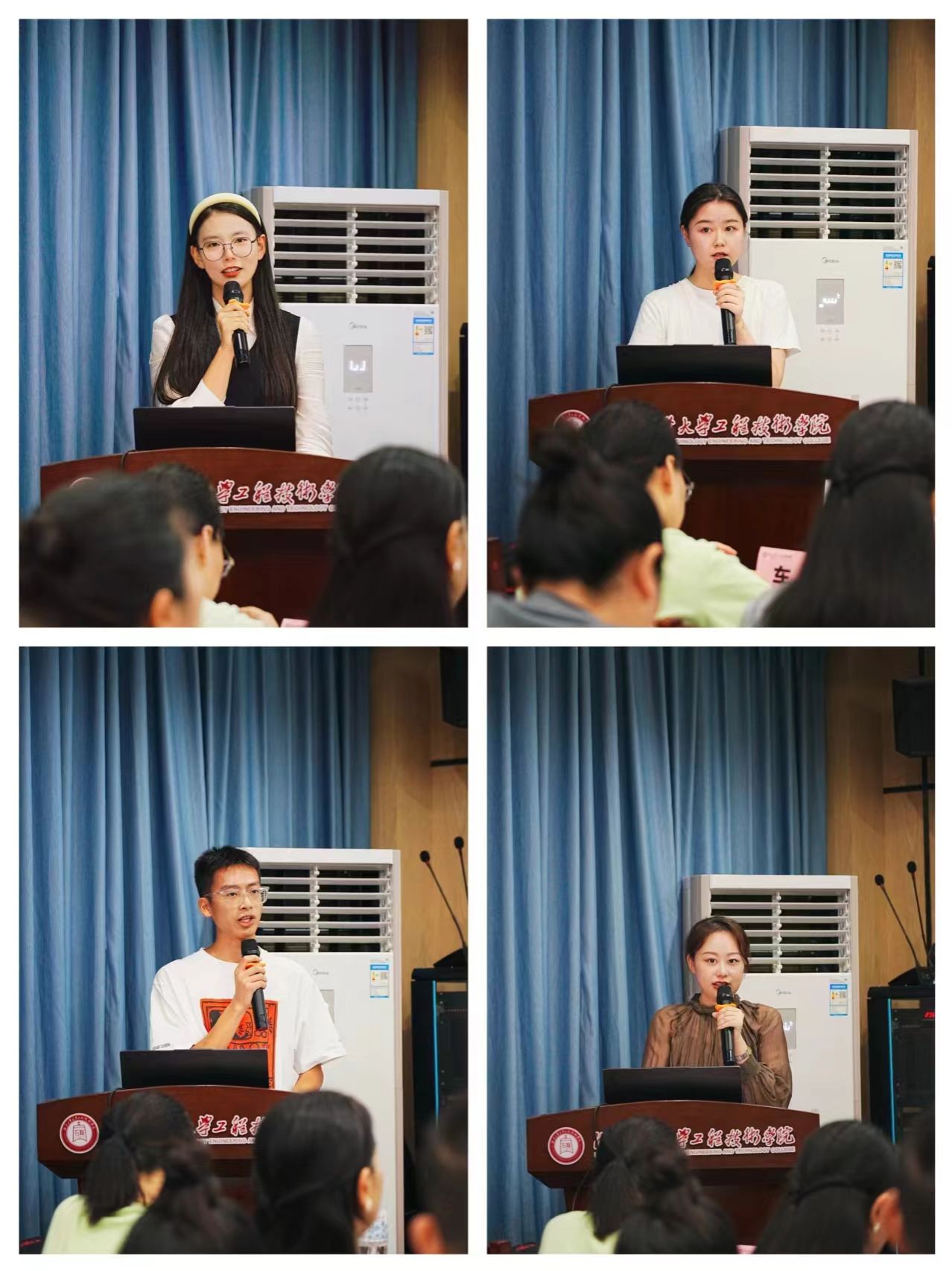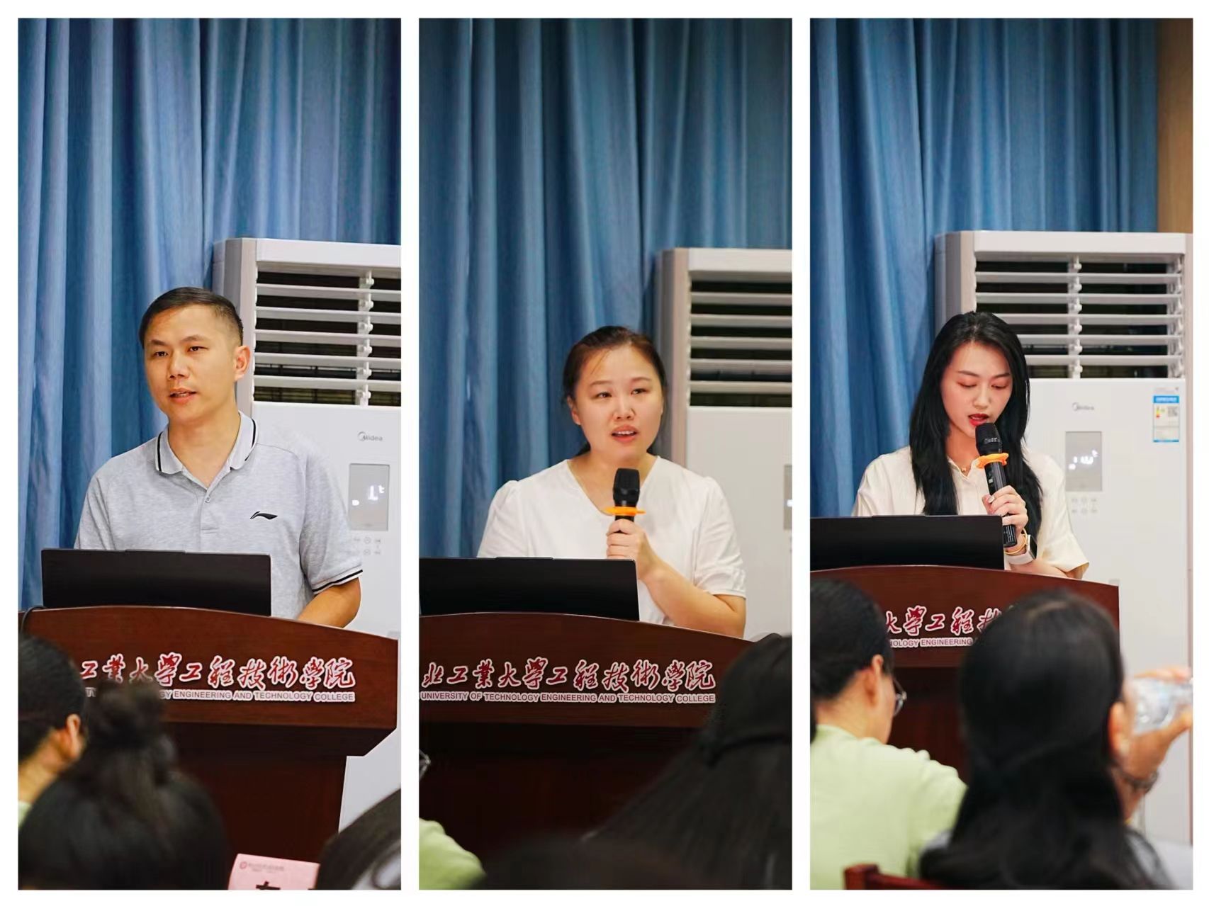 会上,学生工作部副部长张茜对《湖北工业大学工程技术学院新时代辅导员队伍建设实施办法》文件进行解读。学习分享环节,计算机系辅导员魏吟秋围绕“辅导员提升理论素养的几种路径”这一主题,分享学习成果。机械工程系辅导员黄思婧以“传承红船精神,点亮青春梦想”为主题,结合机械系暑期社会实践进行分享;管理系辅导员翁佳豪做了关于辅导员素质能力及竞赛备赛学习分享。艺术设计系辅导员梅心悦则作为新入职代表,分享了暑期岗前培训的学习收获与感受。