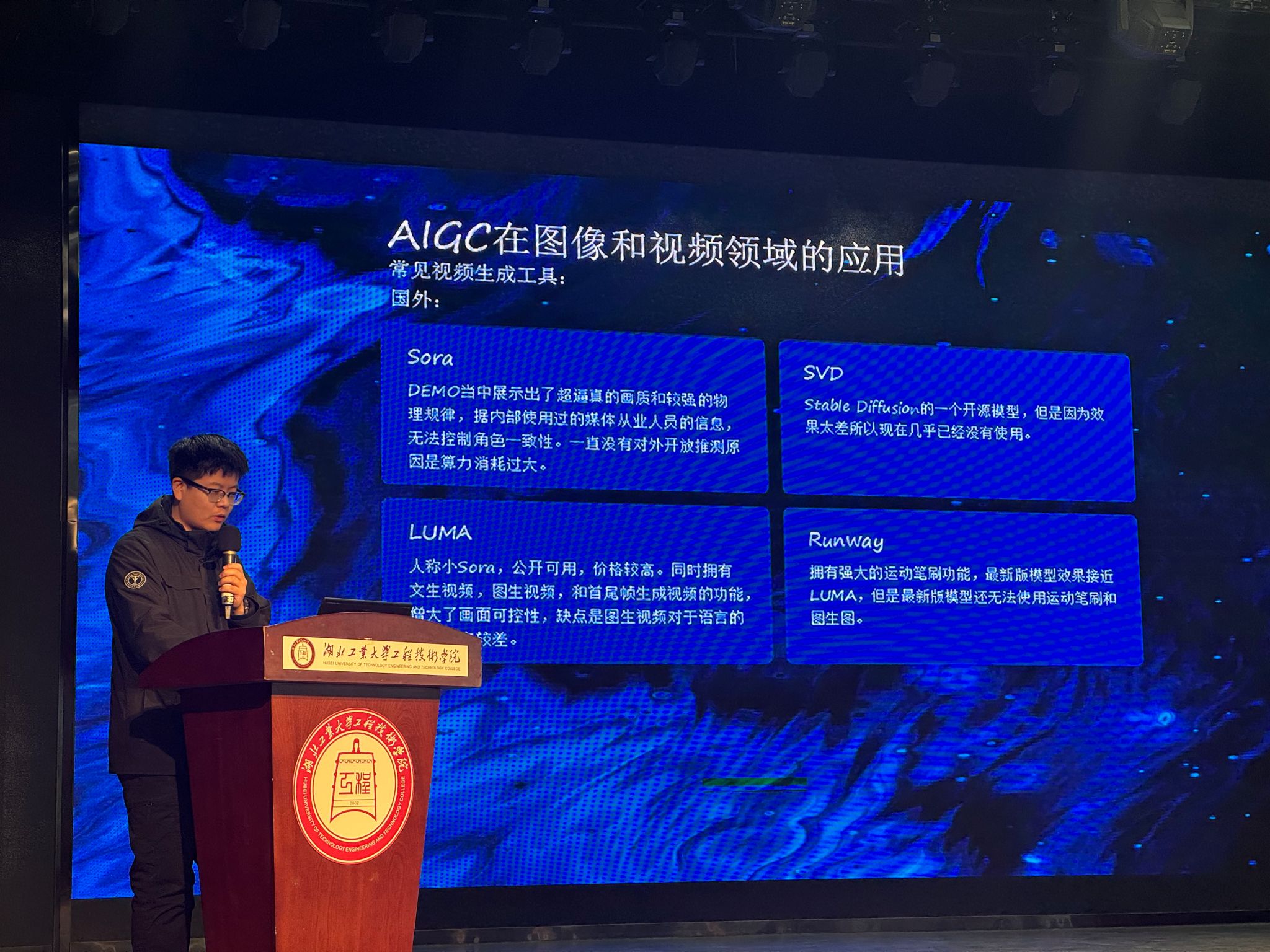 刘学为详细梳理了AIGC的发展历程,深入探讨了AIGC的发展前沿动态。他结合AIGC在图像和视频领域的应用案例,生动展示了AI技术在公司项目中的应用以及在工作中的影响,并深入剖析了AIGC对内容行业的影响与冲击,指出其能够提升创作速度和效率,拓展创意边界,并增强内容的个性化和互动性。此外,他还对AIGC影视工作流各环节所需的人才和工具进行了全面解析,包括创意与剧本、分镜设计、视频生成、剪辑与后期以及成片发布等阶段,为学生提供了清晰的职业发展路径。