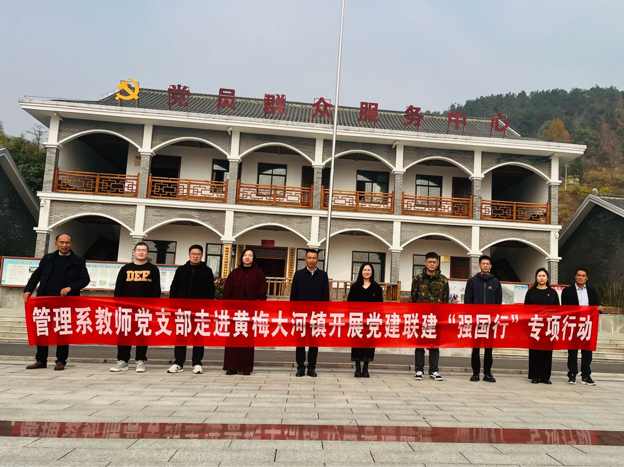 12月4日,管理系教师党支部与黄梅县大河镇党支部开展党建联建活动。黄梅县大河镇镇长石超群、管理系党总支书记王婵、系主任袁荃、副主任许立志和大河镇党支部、管理系教师党支部部分党员参加活动。