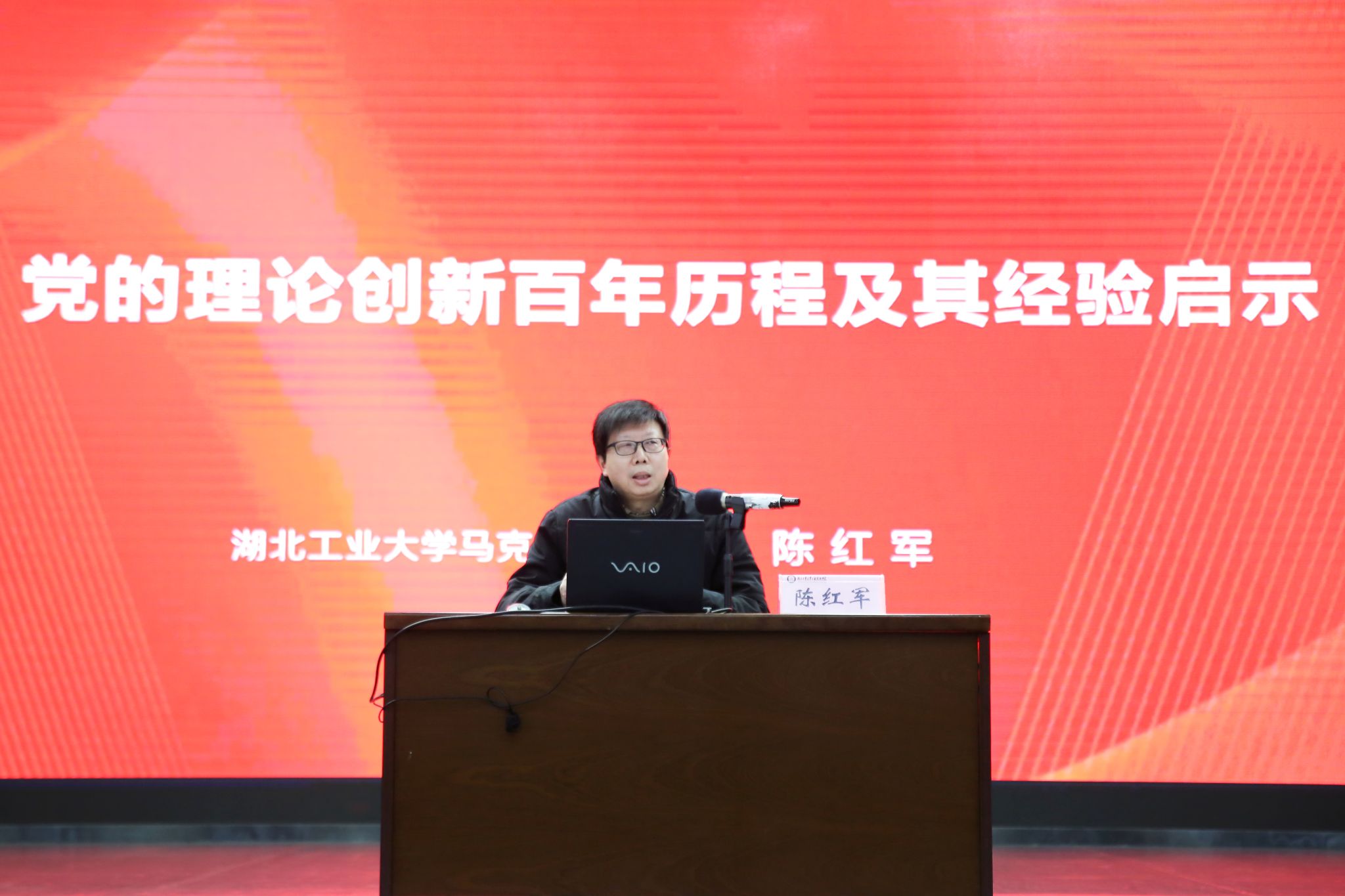 陈红军以《党的理论创新百年历程及其经验启示》为题,从中国革命和建设的特殊性与毛泽东思想的创立和发展、改革开放新时期与邓小平理论的创建、中国特色社会主义走向21世纪与“三个代表”重要思想、坚持和发展中国特色社会主义的科学发展观、中国特色社会主义进入新时代与习近平新时代中国特色社会主义思想、中国共产党百年来推进理论创新的经验启示等六个方面,介绍了党的建设历史经验特别是理论创新的历程。