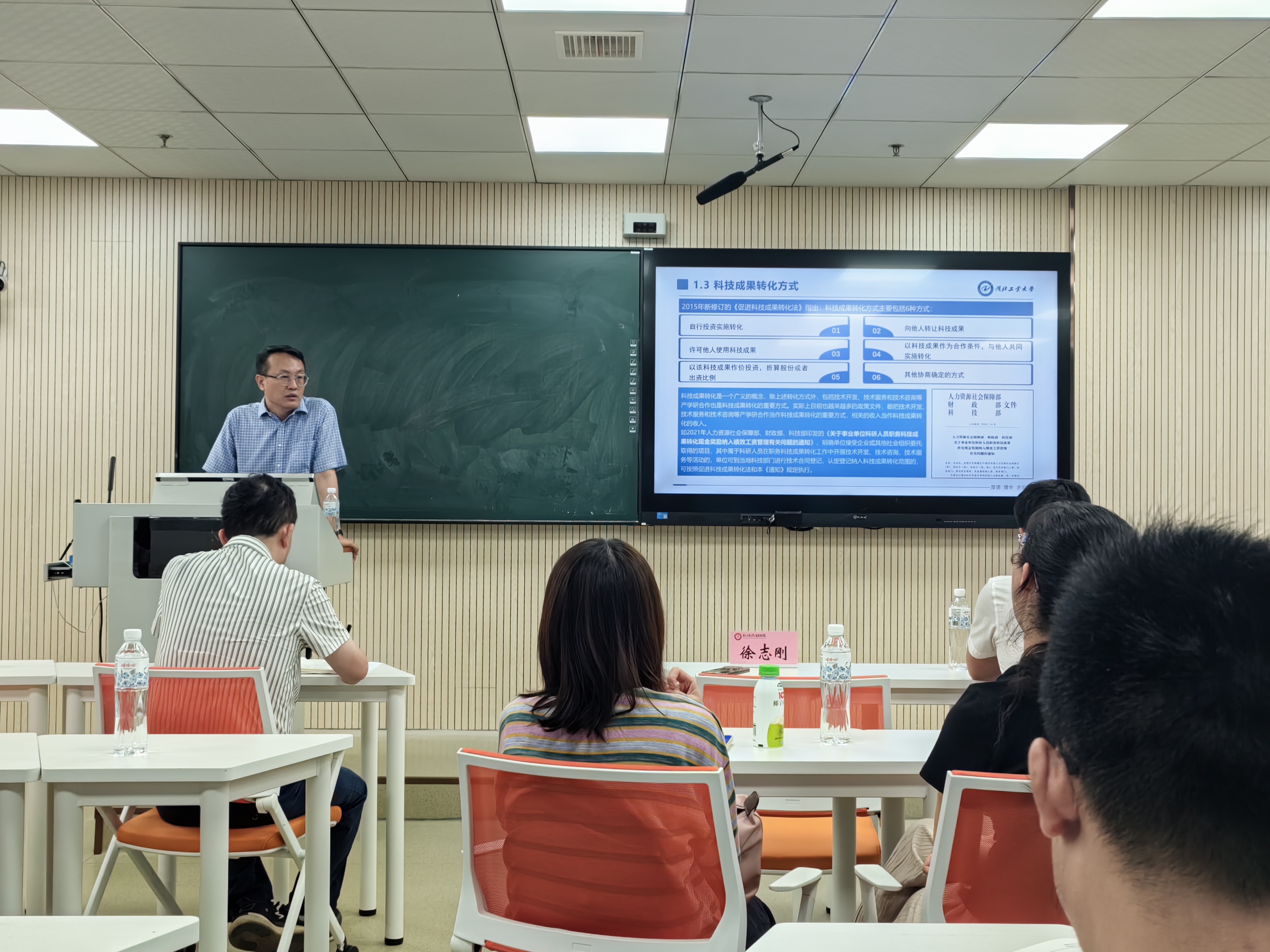 姜伟作总结发言,他表示,徐院长全面梳理了科技成果转化的全流程,介绍了湖北工业大学赋权改革的成功经验,为学院的科技成果转化工作提供了可借鉴、可复制的路径与模式,下一阶段,学院将结合工作实际,进一步进行系统性创新,推进学院科技成果加速转化,赋能经济社会高质量发展。