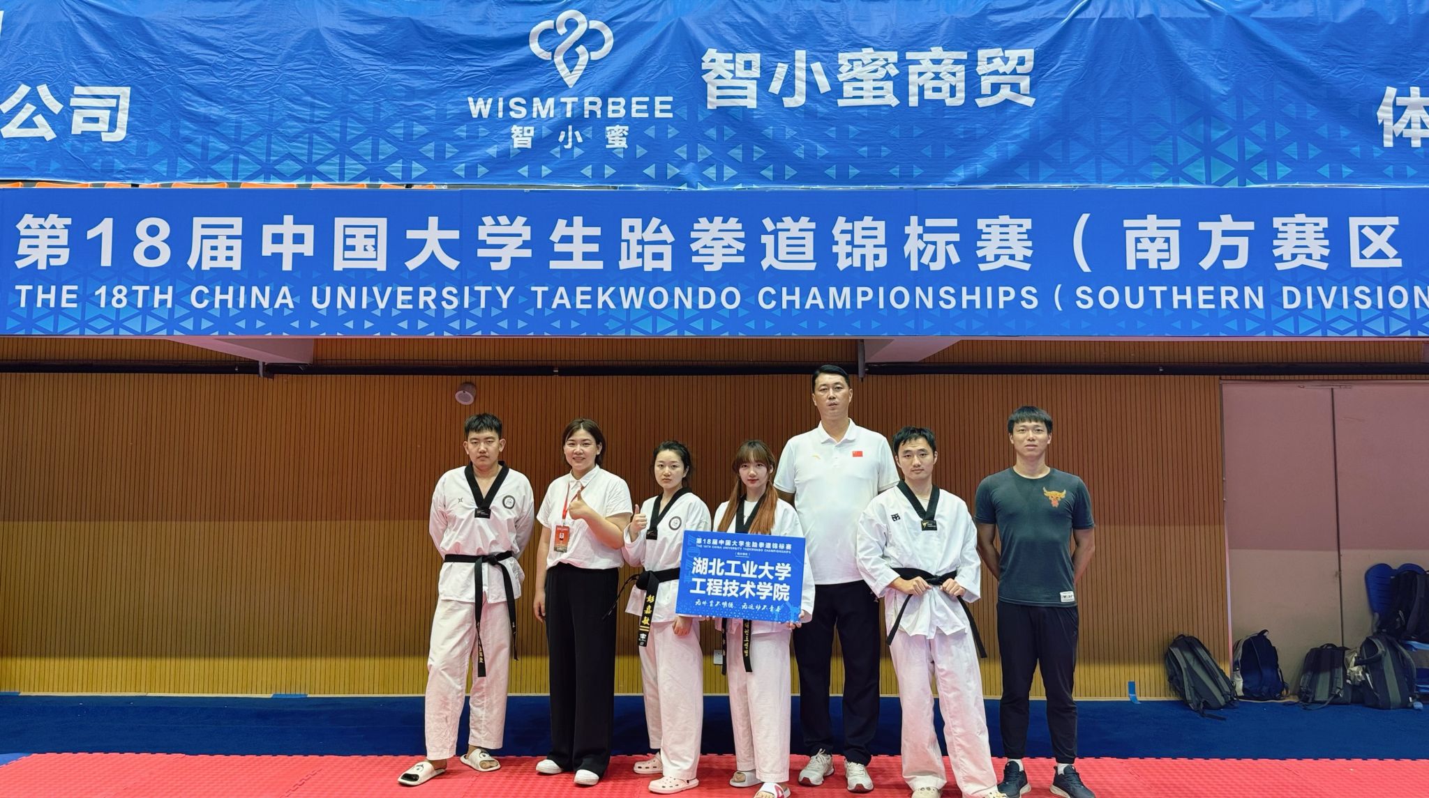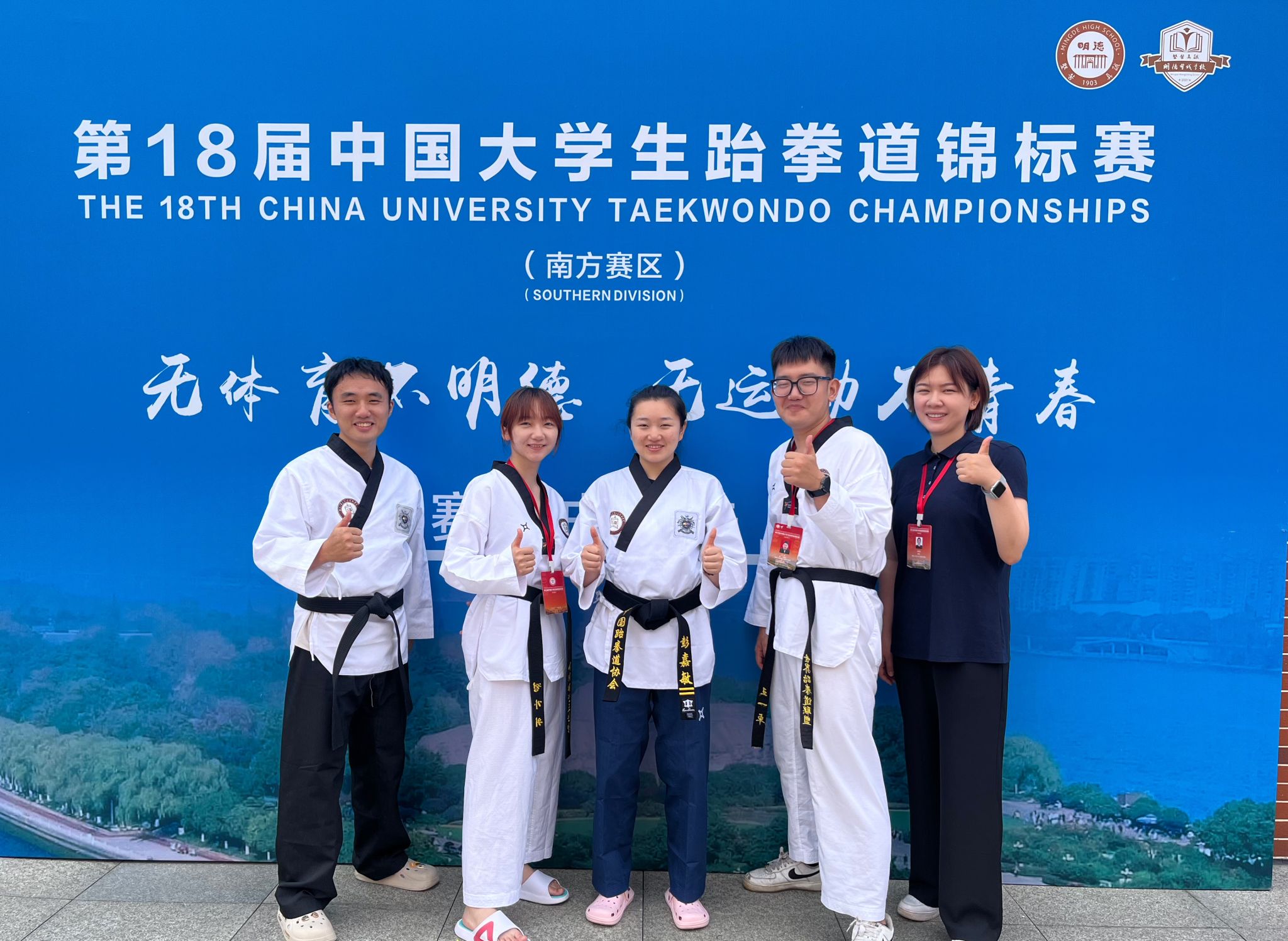 第18届中国大学跆拳道锦标赛(南方赛区)由中国学生体育联合会主办,中国学生体育联合会大学跆拳道分会执行。比赛中,我校参赛队员顽强拼搏,管理系22gz电商1班彭嘉敏获女子乙组-62公斤级第二名; 电气与电子工程系21gb电气1班李好、艺术设计系22gb动画1班徐晶晶获甲组混双太极八章第三名;电气与电子工程系22gb电气1班王一卓获优秀运动员。