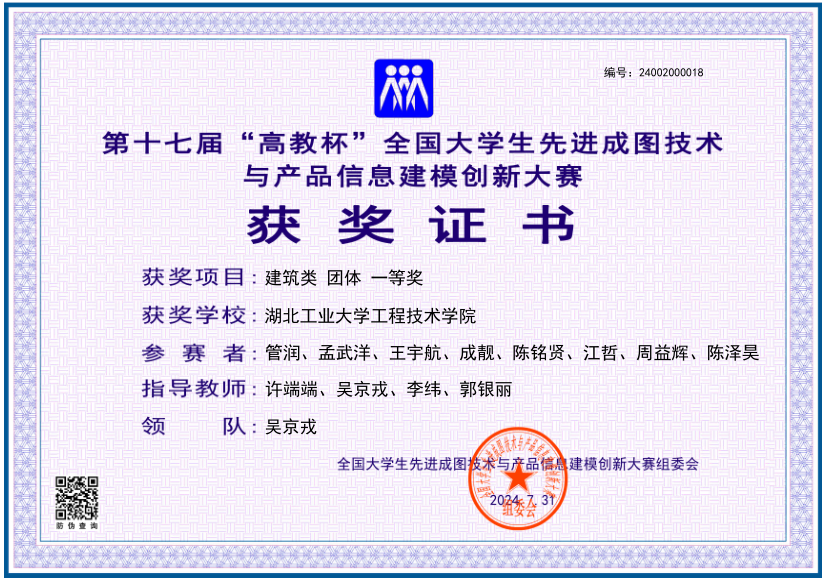 近日,第十七届“高教杯”全国大学生先进成图技术与产品信息建模创新大赛在贵州大学落下帷幕。我院土木工程系学子荣获建筑类、道桥类个人一等奖5项、二等奖4项、三等奖6项等15项奖项,同时还获得了建筑类团体一等奖、智能建筑结构设计赛道二等奖的突破性好成绩。