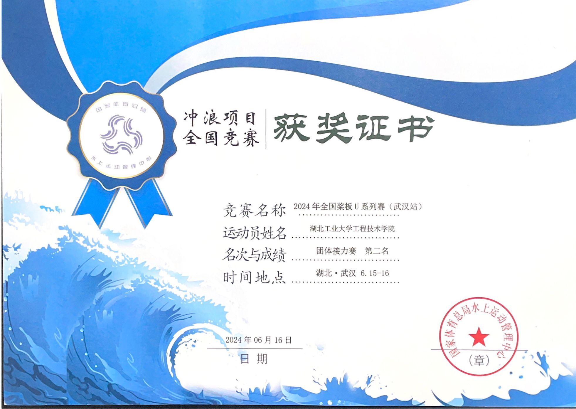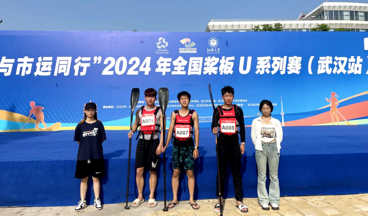 近日,2024年全国桨板U系列赛(武汉站)在江汉大学三角湖畔顺利举行,吸引了来自全国各地的300余名教练员、运动员齐聚一堂,共同上演了一场精彩纷呈的水上竞技盛宴。我院代表队勇夺团体接力赛第二名的好成绩。