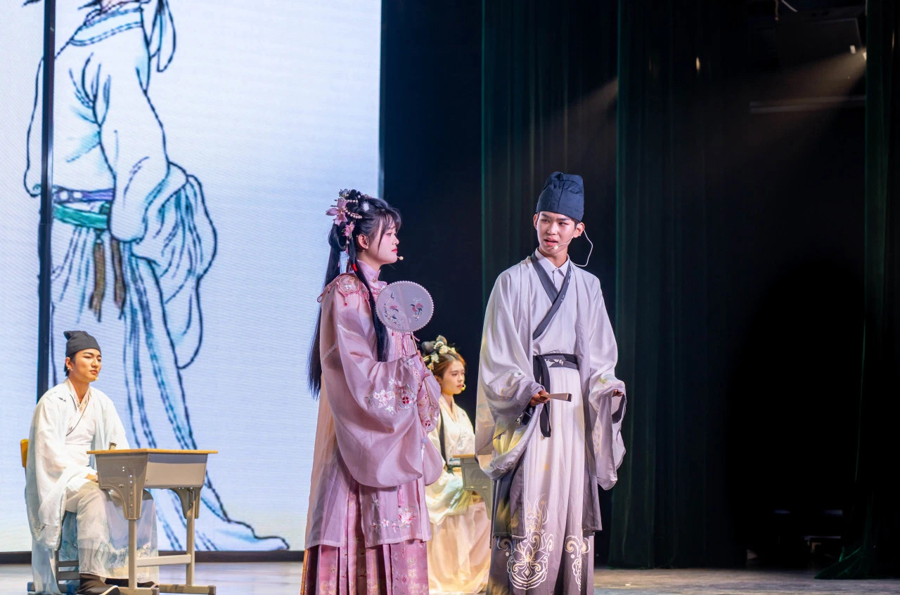 晚风吹开盛唐的帘栊,情景朗诵《诗歌里的中国》铿锵有力,让观众在诗意中重温历史。歌曲《琵琶行》荡漾心头,民乐演奏《象王行》展现了磅礴的生命力。情景音诗歌《橘颂》展现了经典诗文的魅力,诉说着屈原对家国的热爱。