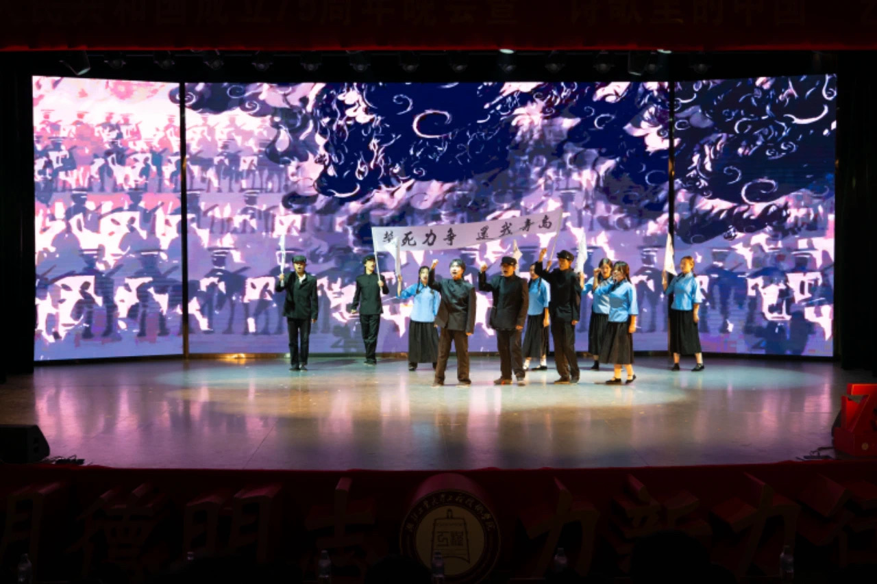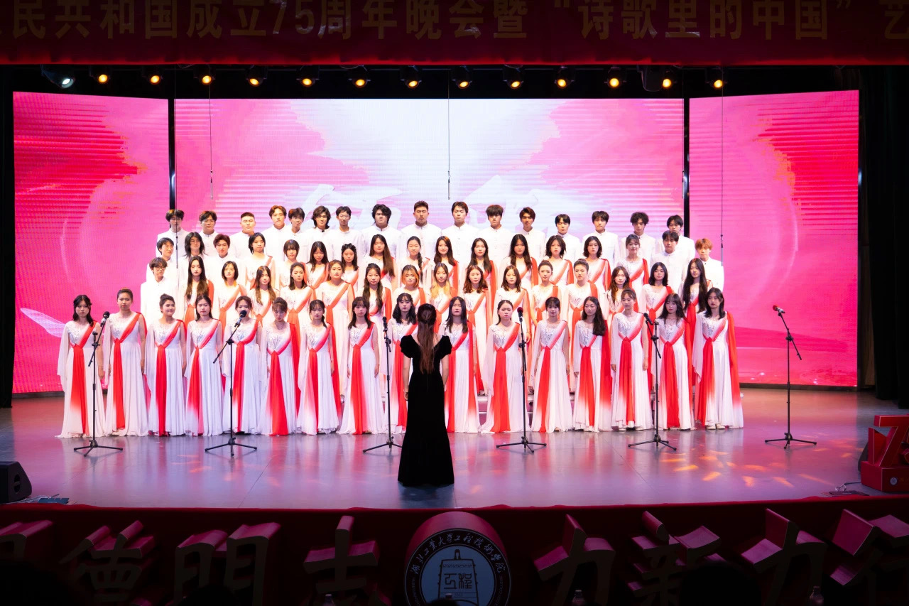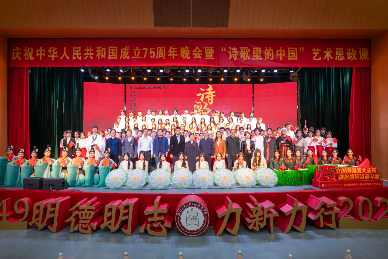 10月30日,学院在南教学区博雅园报告厅举行庆祝中华人民共和国成立75周年晚会暨“诗歌里的中国”艺术思政课。本次活动邀请到湖北工业大学党委副书记胡晓艳、校学工部副部长张承涛、校团委副书记章旭出席观看。