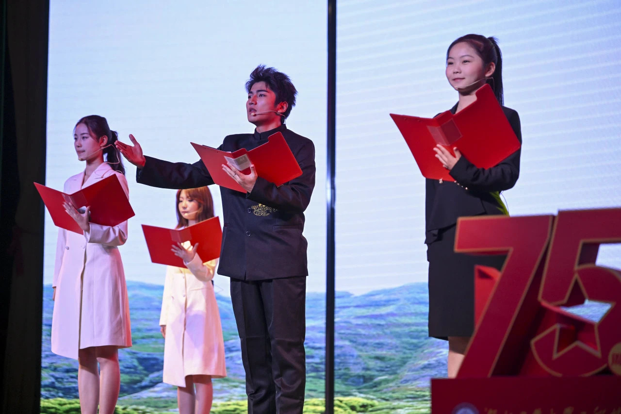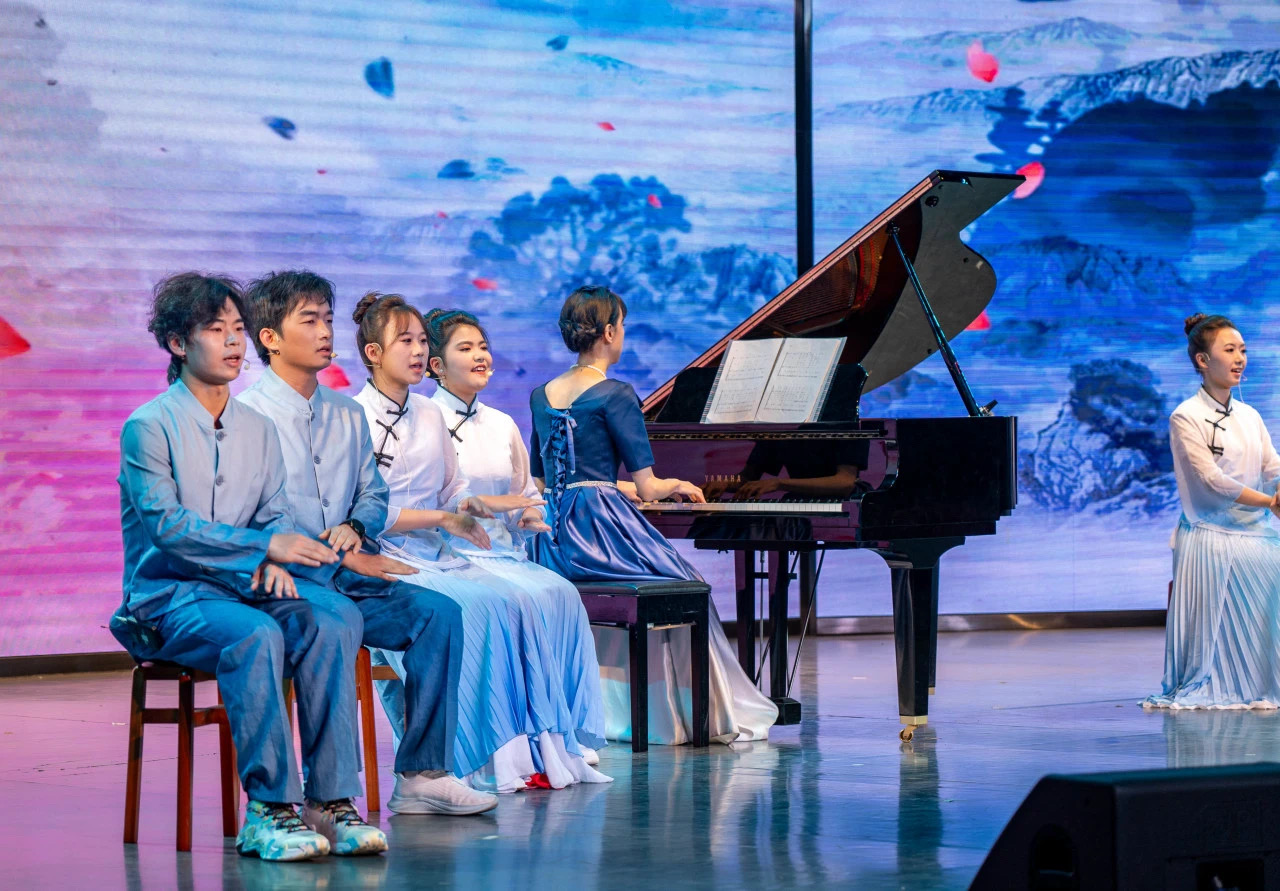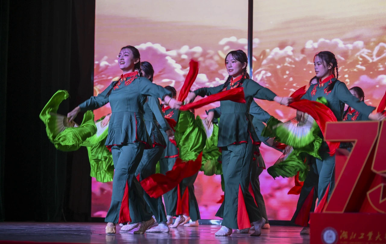 10月30日,学院在南教学区博雅园报告厅举行庆祝中华人民共和国成立75周年晚会暨“诗歌里的中国”艺术思政课。本次活动邀请到湖北工业大学党委副书记胡晓艳、校学工部副部长张承涛、校团委副书记章旭出席观看。