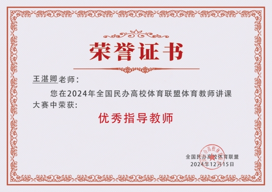 王湛卿在整个备赛及参赛过程中,为参赛教师提供了宝贵的指导与支持,确保了团队的出色表现,荣获本次大赛“优秀指导教师”称号。